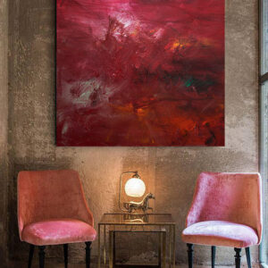 With “I See You,” Rima Chahine captures the feeling of being seen and understood. This acrylic on canvas piece measures 100×100 cm and was created in 2018. The interplay of colors and brushstrokes creates a sense of warmth and connection that will draw you in and keep you captivated.