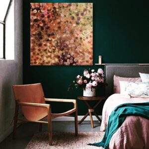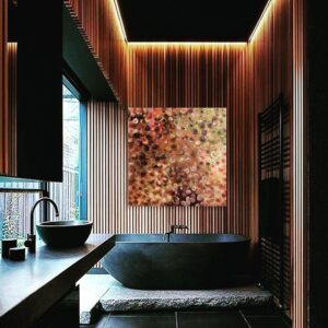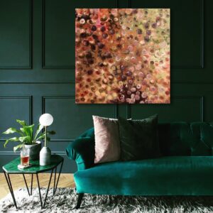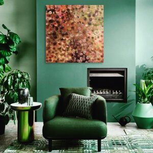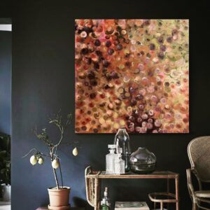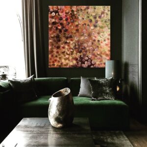 Radiant hues of pink and blue blend seamlessly in this stunning masterpiece. The acrylic on canvas painting is 100×100 cm in size, created in the year 2018. The romantic and dreamy aura of the painting makes it a perfect addition to any contemporary decor.
