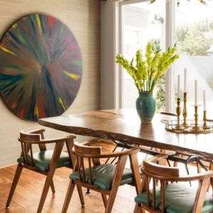This painting depicts a winding path through a forest, with sunlight filtering through the leaves and illuminating the path ahead. The artist has used a mix of bright and muted colors to create a sense of depth and perspective, with the foliage and flowers creating a sense of harmony. The painting inspires a sense of adventure and exploration.