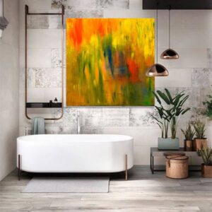 This captivating acrylic on canvas painting measures 122×122 cm and was created in the year 2018. The intense shades of blue, black and grey come together in a mesmerizing pattern, evoking a sense of dizziness and instability. The painting is sure to leave a lasting impression on any viewer.